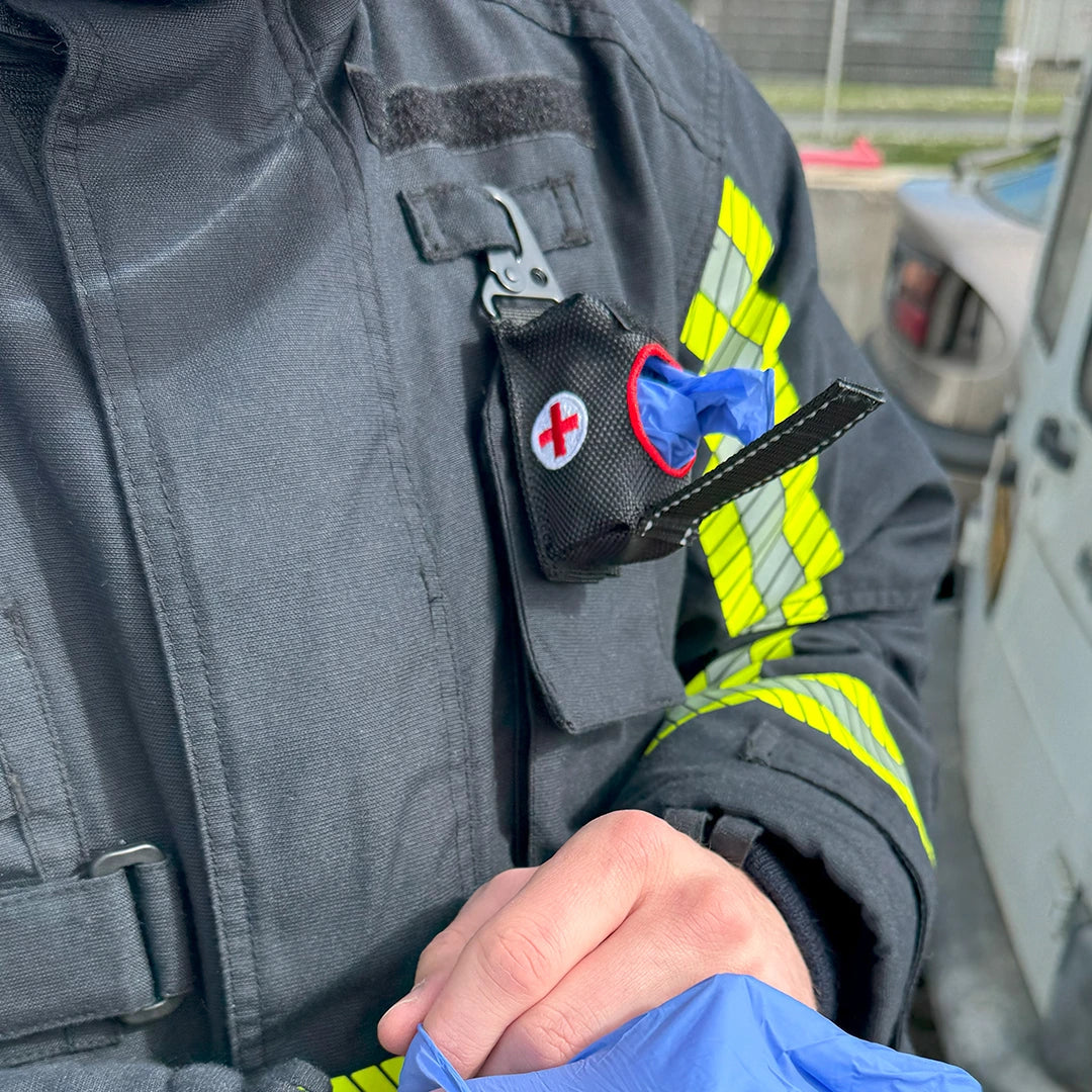 Le Dexter Pocket permet au sauveteur d’avoir en permanence au moins deux paires de gants de secours à victimes en nitrile propres, fixées directement sur le pantalon TSI ou à la veste de feu. Compact et robuste, il assure un accès rapide aux gants, évitant les allers-retours au véhicule et améliorant ainsi la réactivité et la sécurité en intervention.